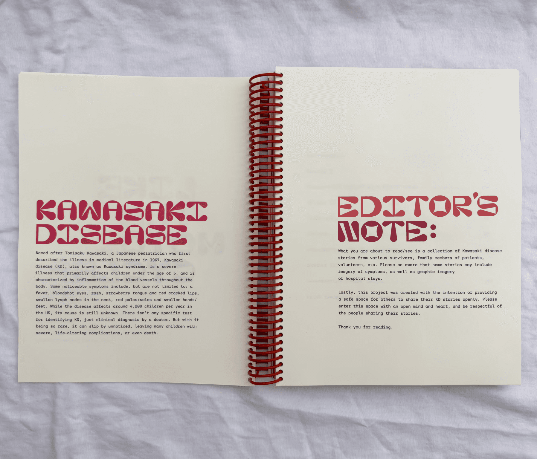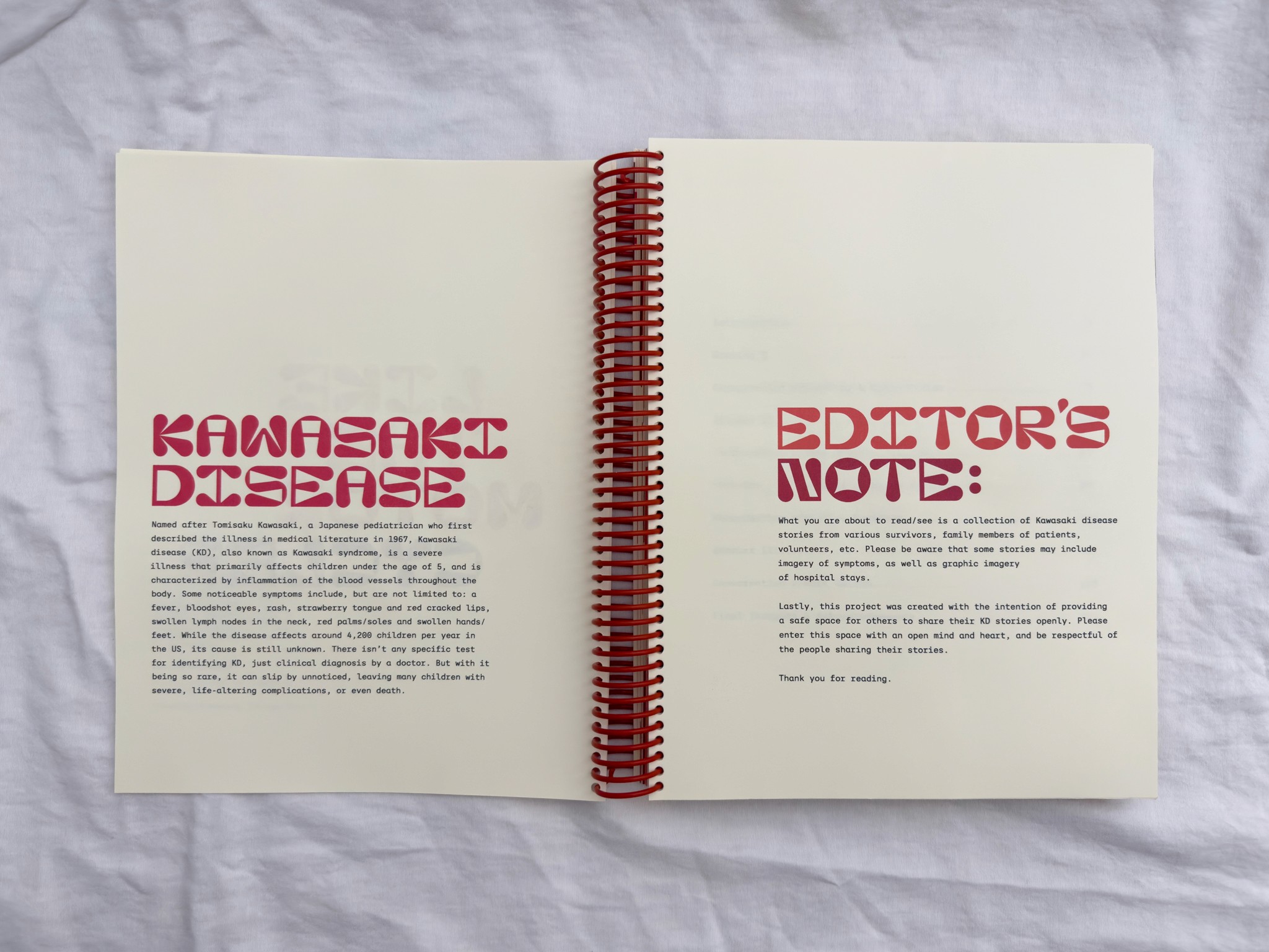 It was my first steps of describing my story before writing it into the project, and also my first time confronting Kawasaki disease publicly. But I knew how important it was to share with others my story—To let others know they are not alone in their trauma, and that I am not asking for their stories selfishly. We give back what we receive, and for me to ask for others’ experiences without sharing my own is not at all what this project stands for.