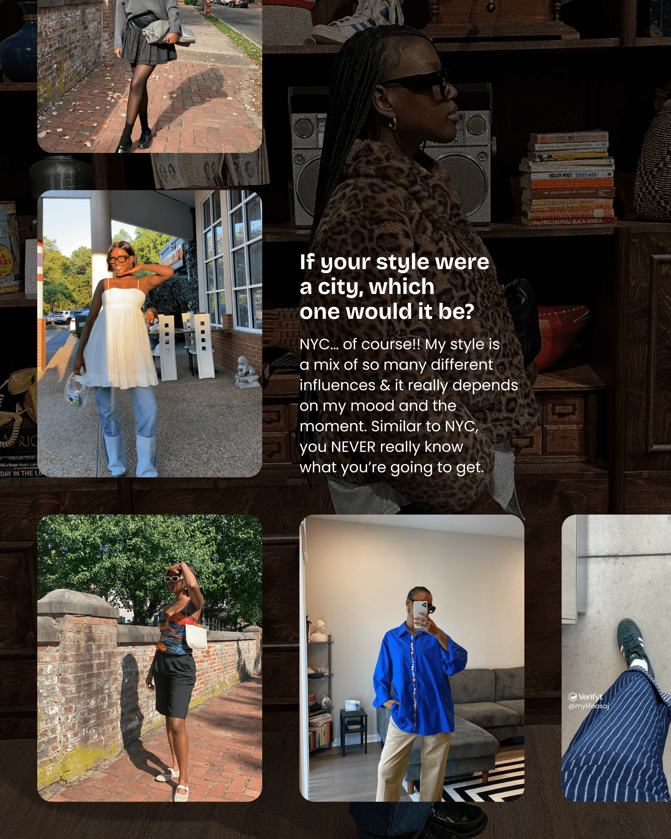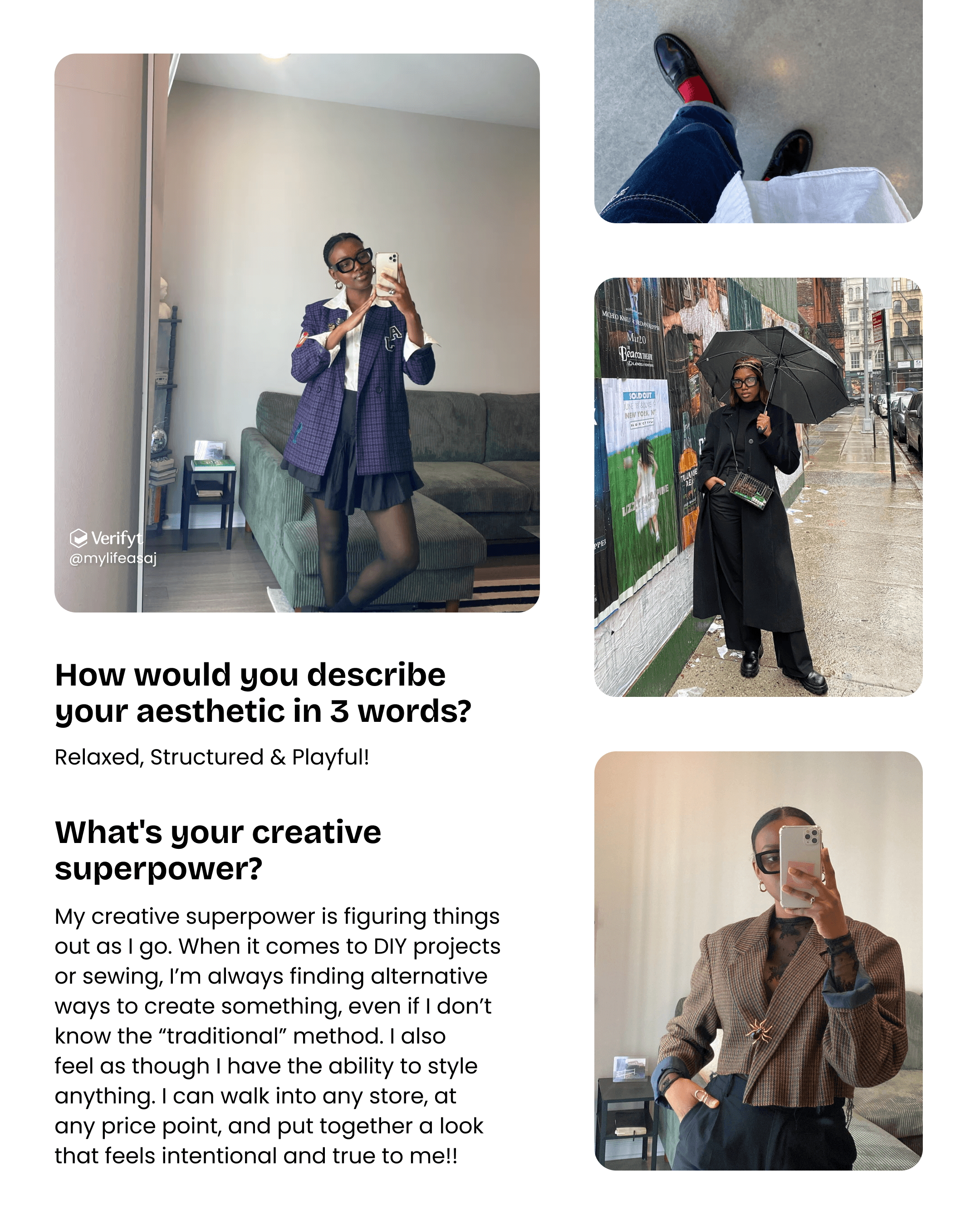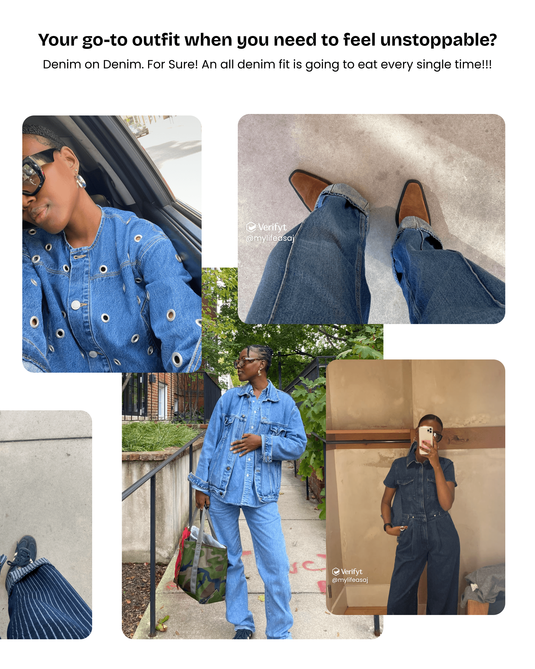 The process involved developing a suite of typefaces we can use in different scenarios, as well as various visual elements, from frosted glass backgrounds created with UGC, gradient glows, and photo collages, to hand drawn arrows, typographic motion direction, and components that come straight from the Verifyt app itself—Ultimately showcasing Verifyt as a chic, knowledgeable, but approachable brand for fashion forward minds.